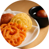 A traditional platter of jilebi, ladoo, and mysorepak to sweeten your day.