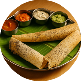 Authentic South Indian Flavours on a Banana Leaf – Crispy Masala Dosas Served with Homemade Chutneys & Sambar